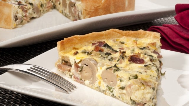Forra un molde (de fondo desmontable) con la pasta brisa, retira el sobrante y coloca encima unos garbanzos para que la masa no suba. Hornea -con el horno previamente caliente- a 180ºC, durante 12-15 minutos.